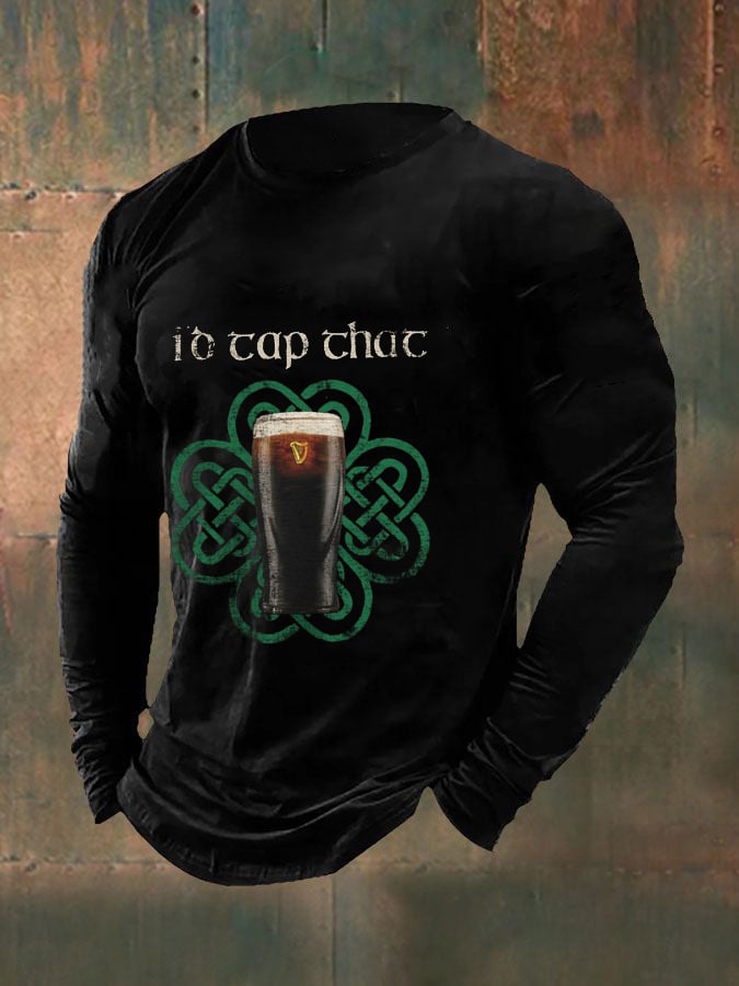 Men's St Patrick's Day I'd TapThat Drinking Casual Long Sleeve T-Shirt