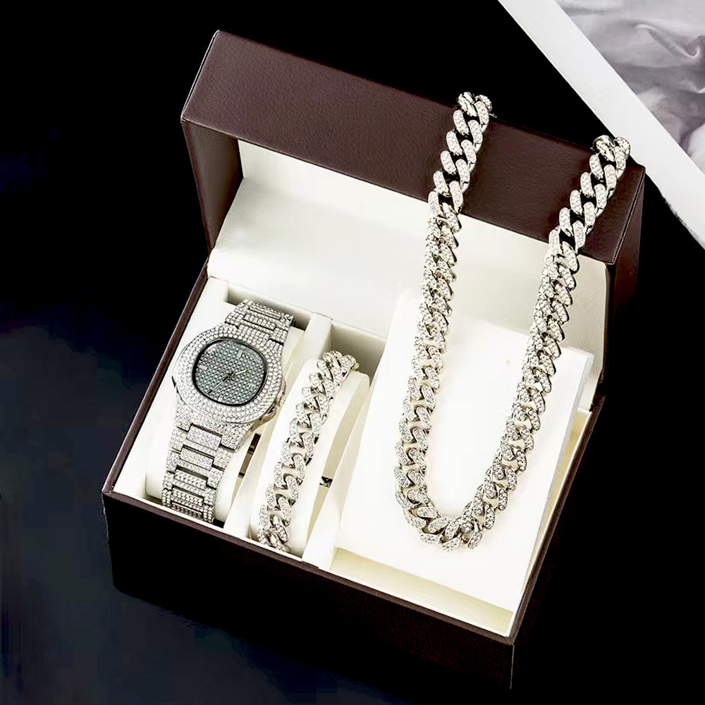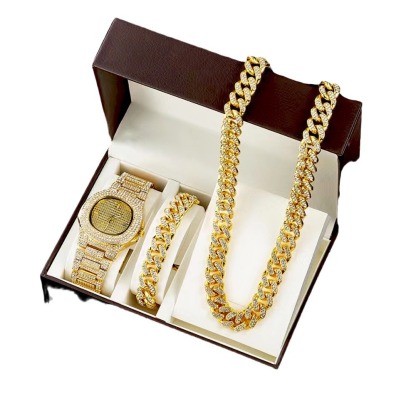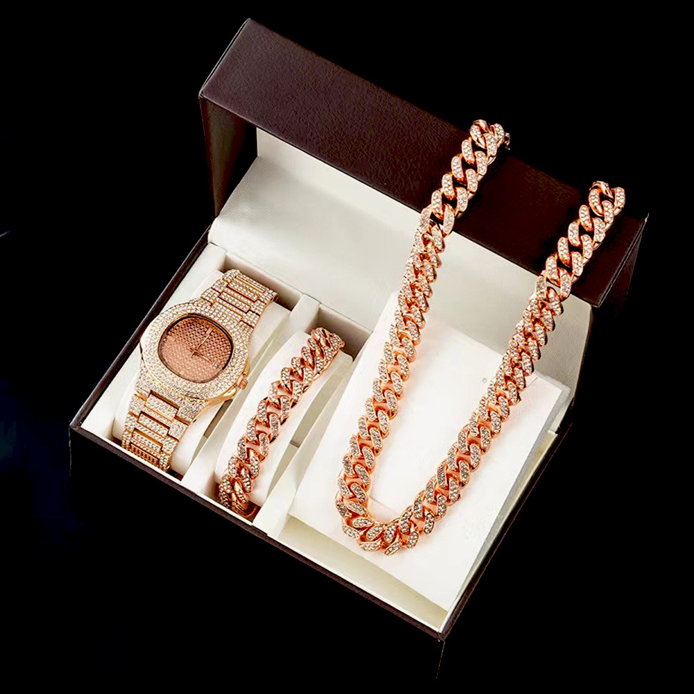 Hip Hop Cuban Chain Watch Bracelet 3-Piece Set