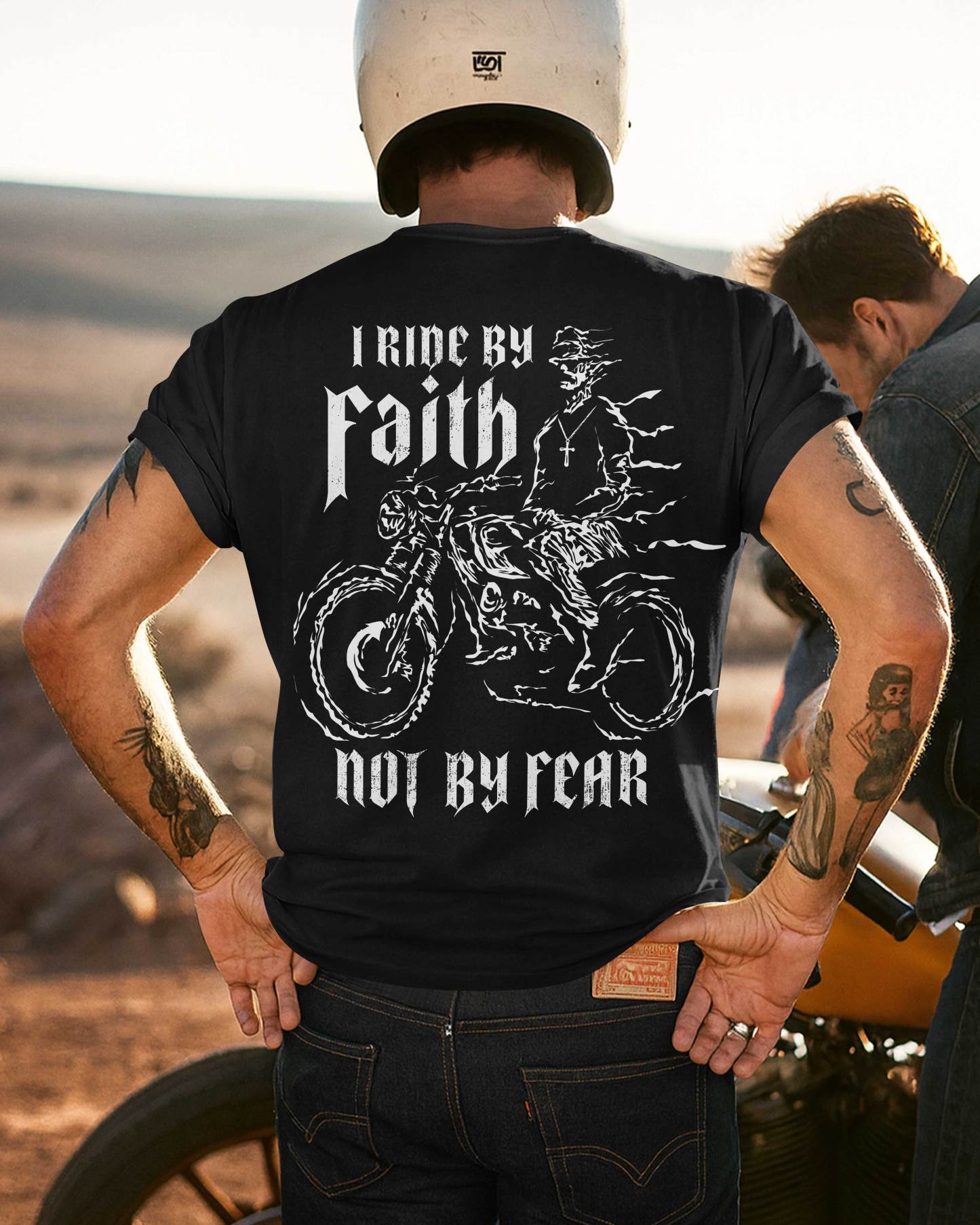 Embrace the open road with a heart full of courage. This powerful tee reminds us that when we walk (or ride) with God, fear has no place in our lives. Inspired by 2 Corinthians 5:7, it’s a bold declaration of trust in His divine protection and guidance on every journey.