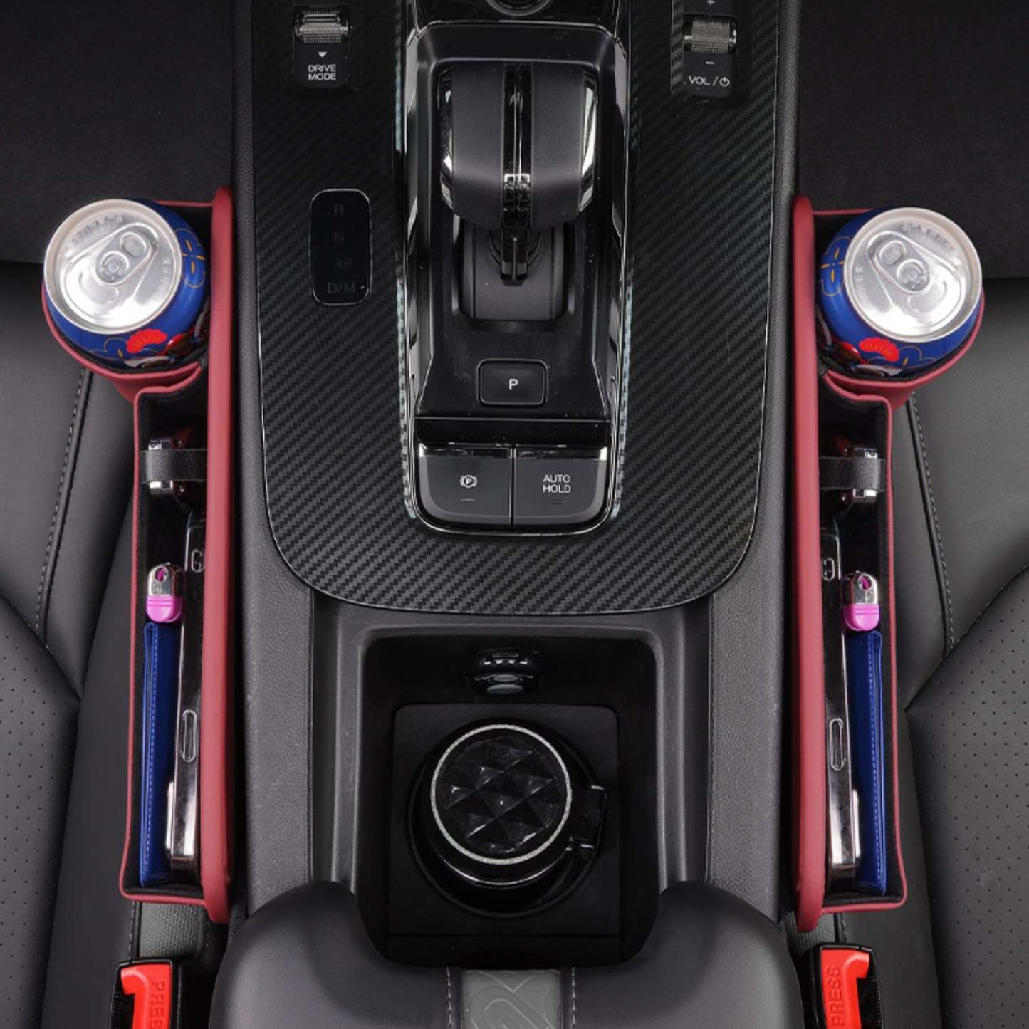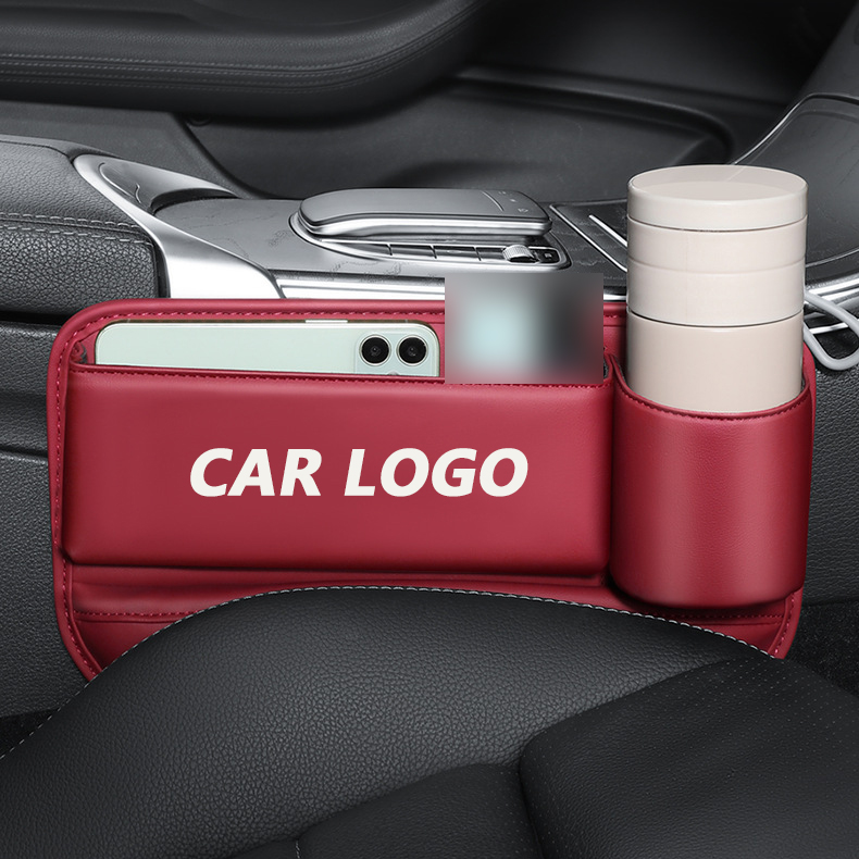 Exclusive Logo Leather Car Seat Storage Box With Water Cup Holder