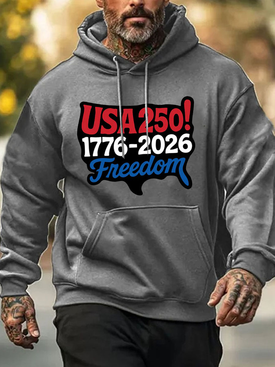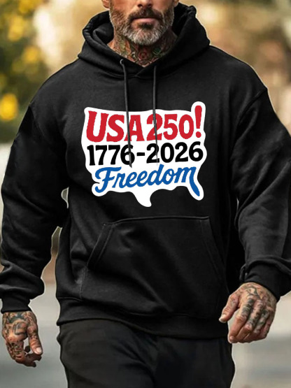 Men`S USA Freedom 250 Pattern 100% 300g Cotton Classic Hoodie