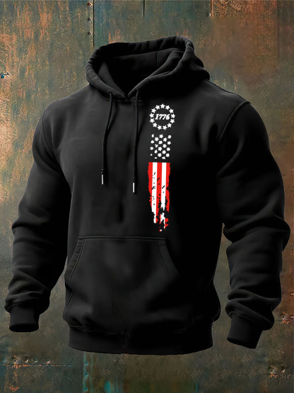 Men's 1776 American Flag Printed Cotton Classic Hoodie