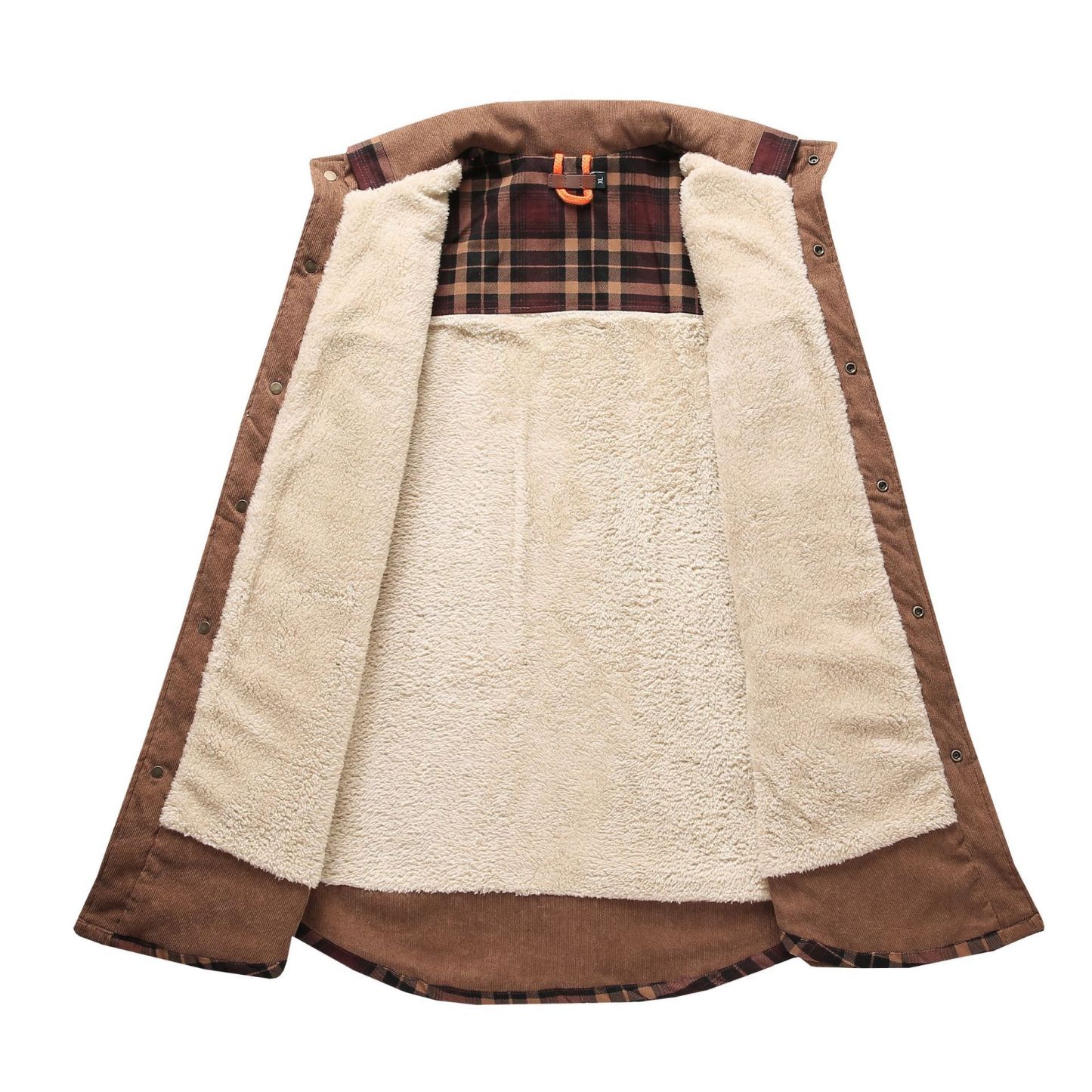 Men's Corduroy Plaid Sherpa Lined Flannel Shirt Jacket Fleece Coat