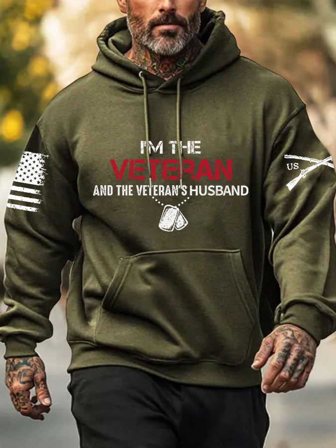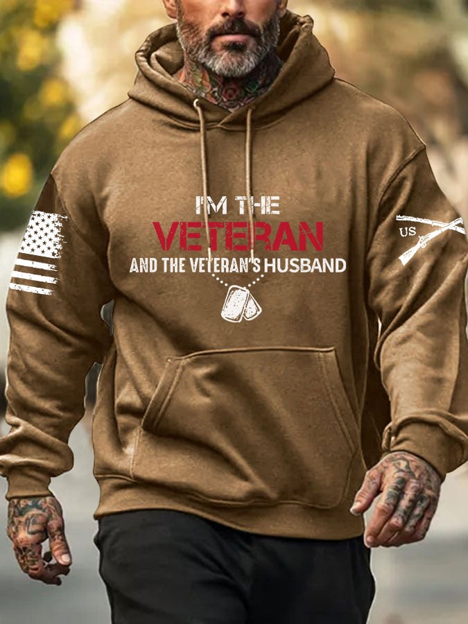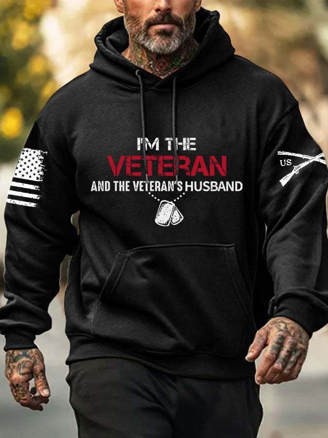 Men's I'm A Veteran And The Veteran's Huaband Print Hoodie