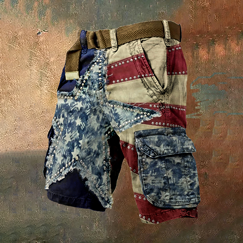 Men's Independence Day Freedom Splicing Design Casual Cargo Shorts