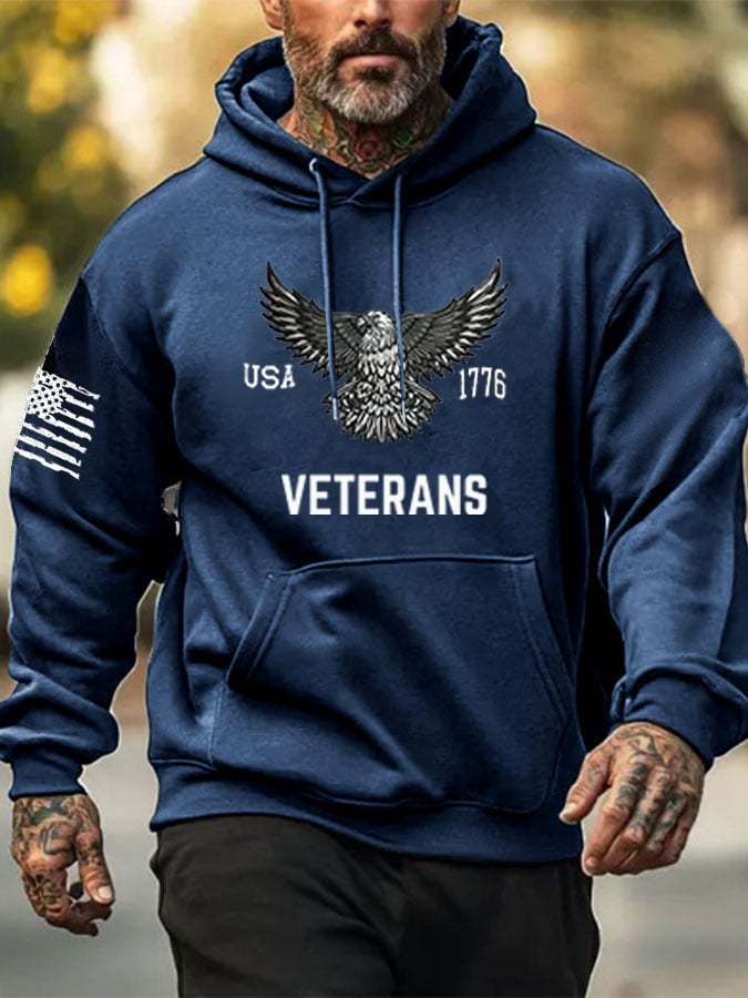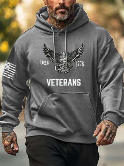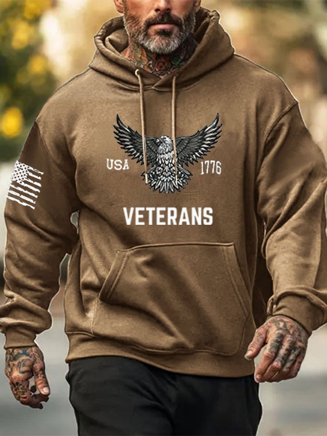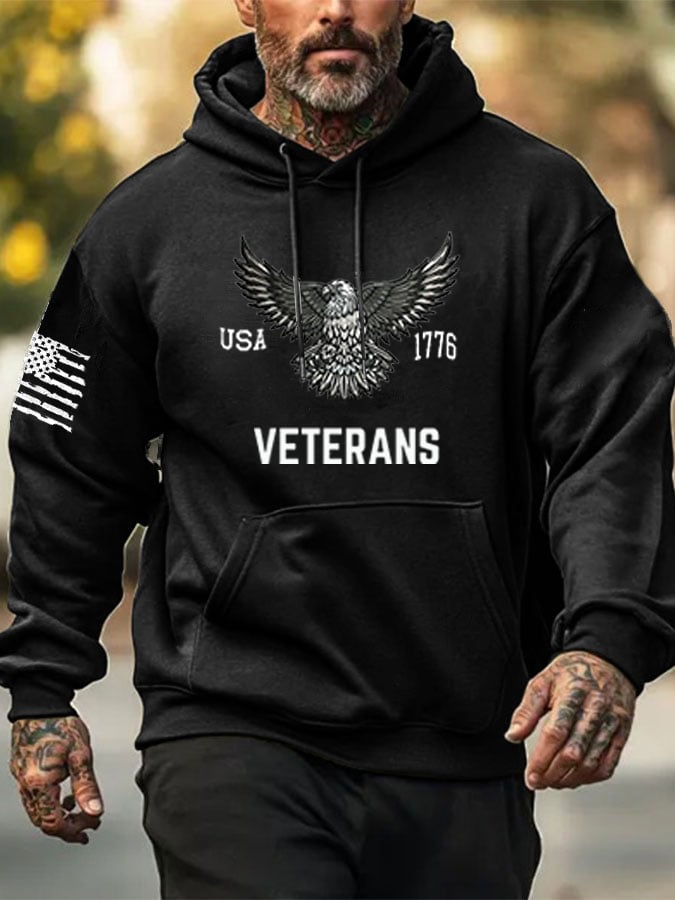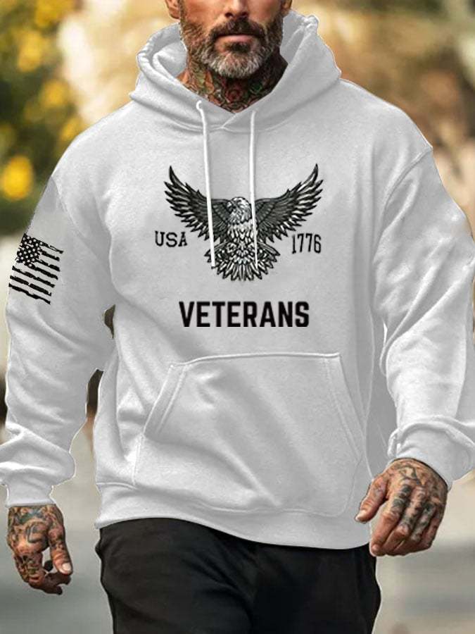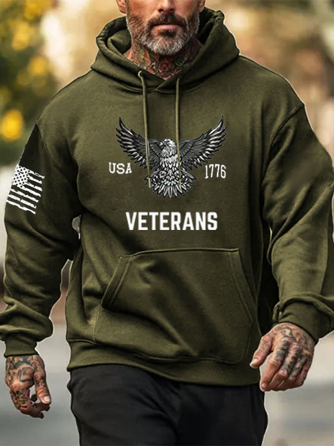 Men's Veterans American Flag Print Hoodie
