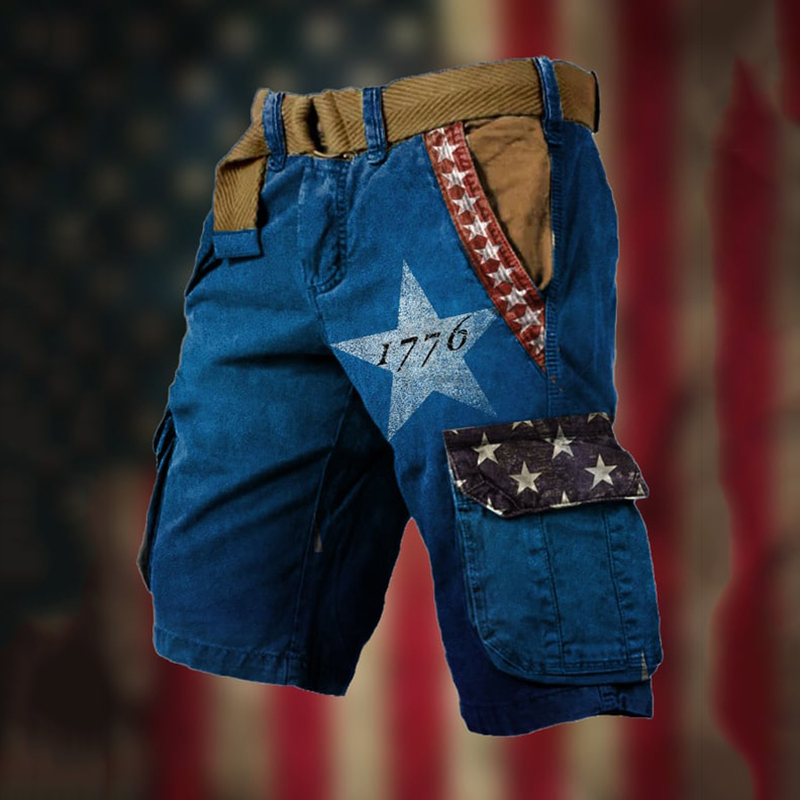 Men's Vintage Flag Independence Day Multi-Pocket Print Cargo Shorts