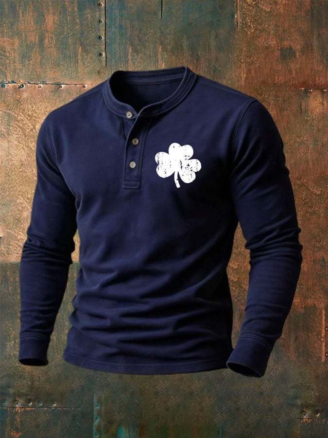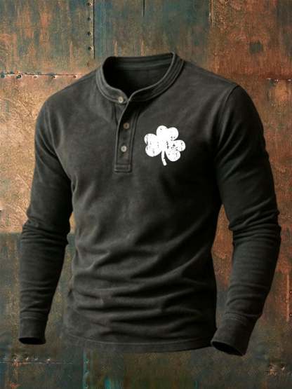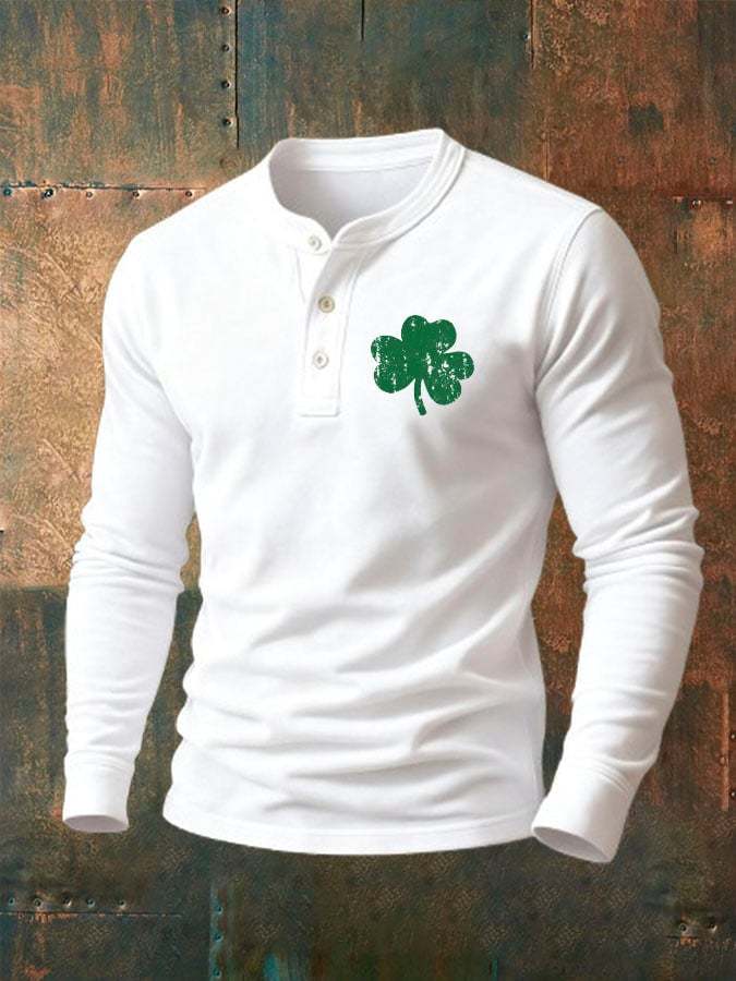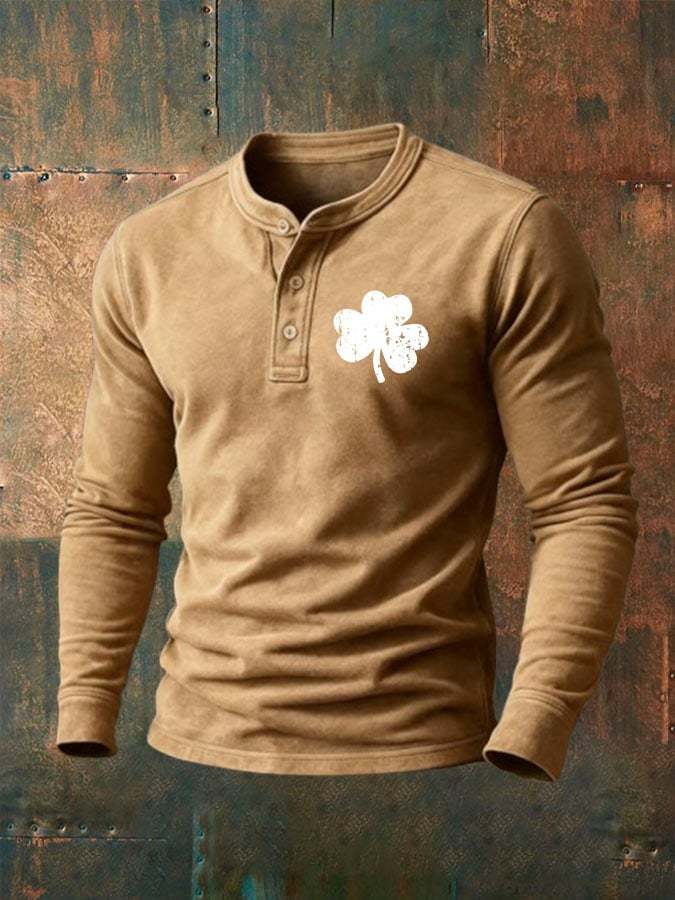 Men'S Vintage St. Patrick's Day Print Henley Neck Shirt