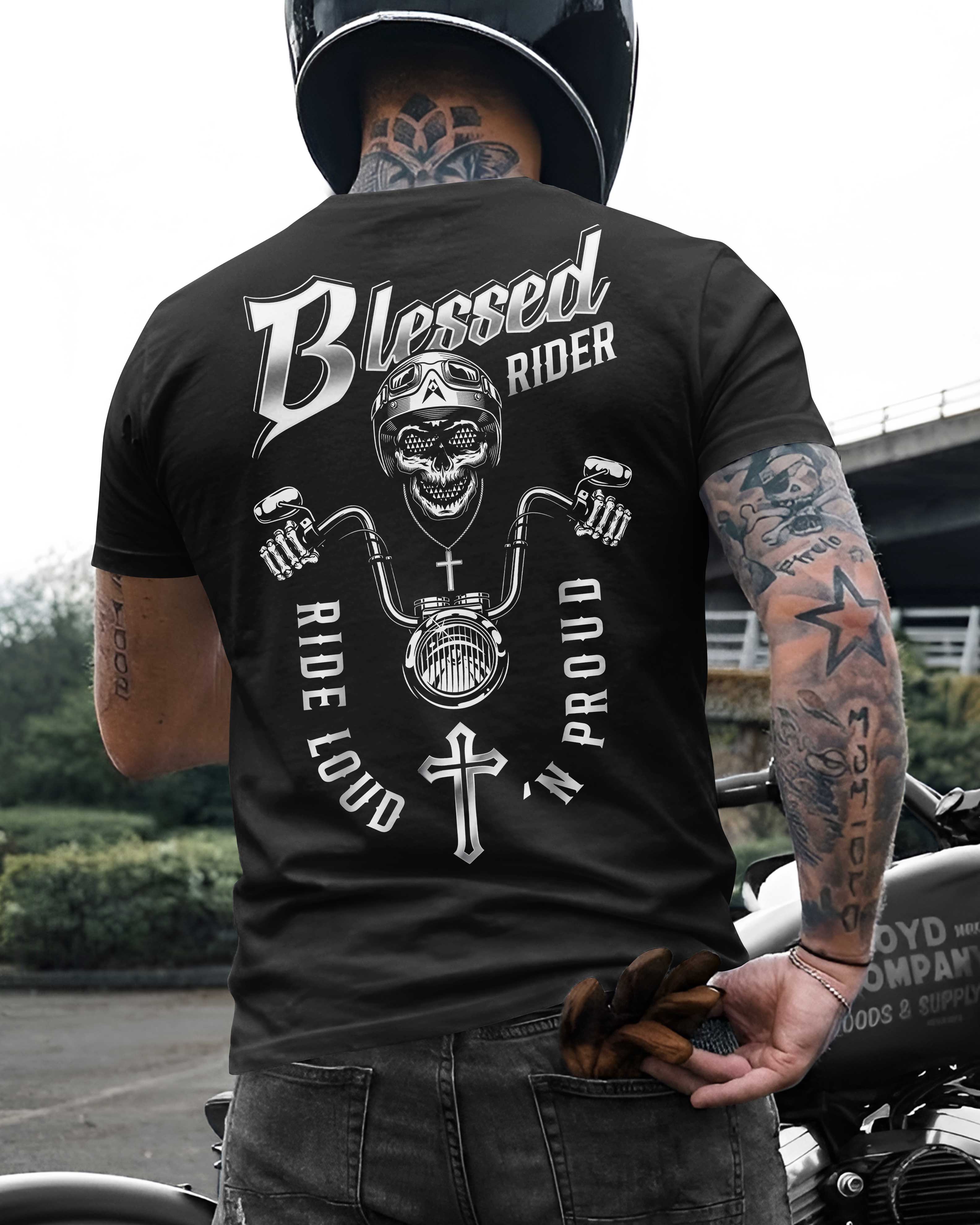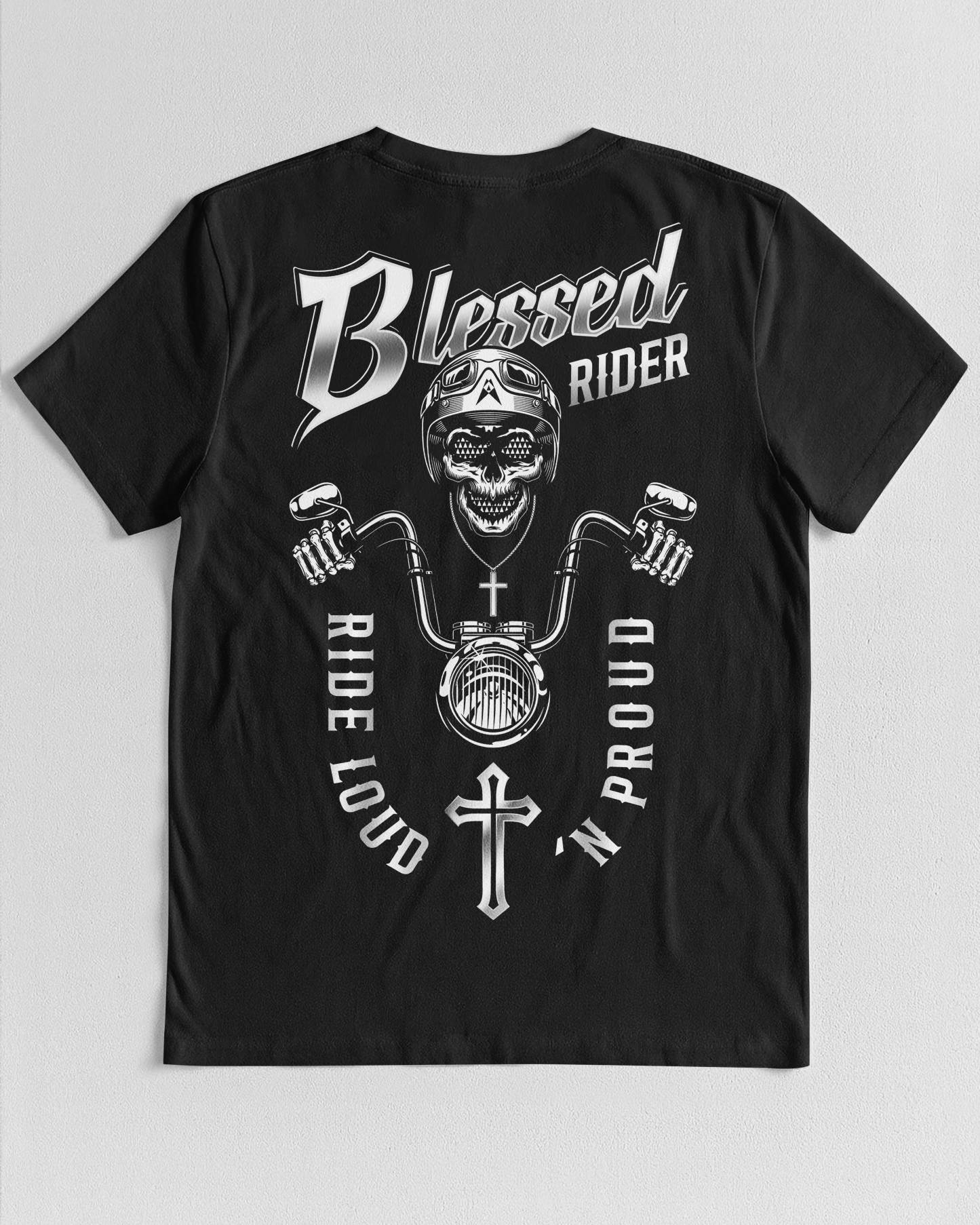 Celebrate your journey on the open road with this "Blessed Rider" tee. A powerful testament to God's grace and protection, this shirt reminds us that we never ride alone. Featuring a bold design and a central cross, it’s a wonderful way to share your faith with every mile you travel.