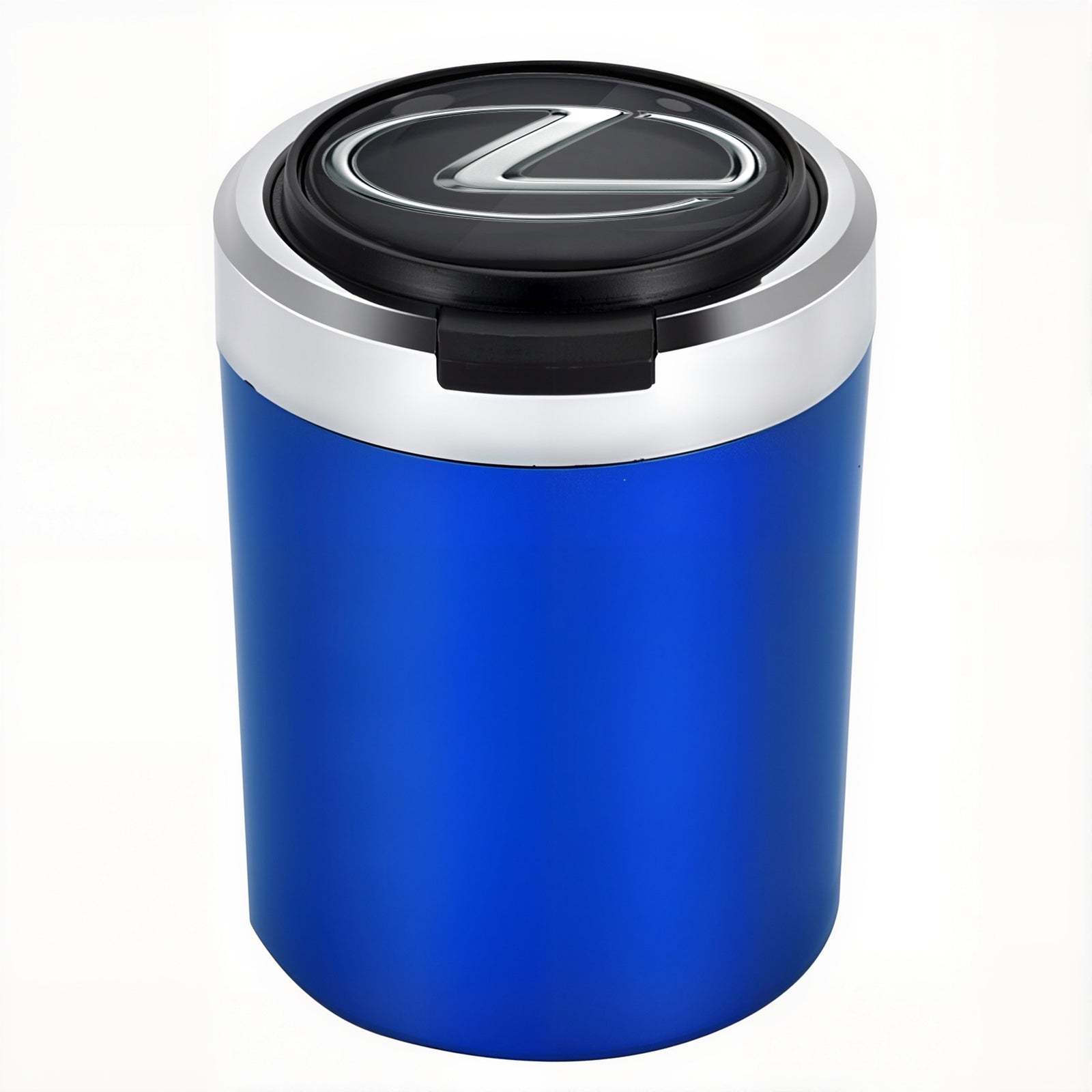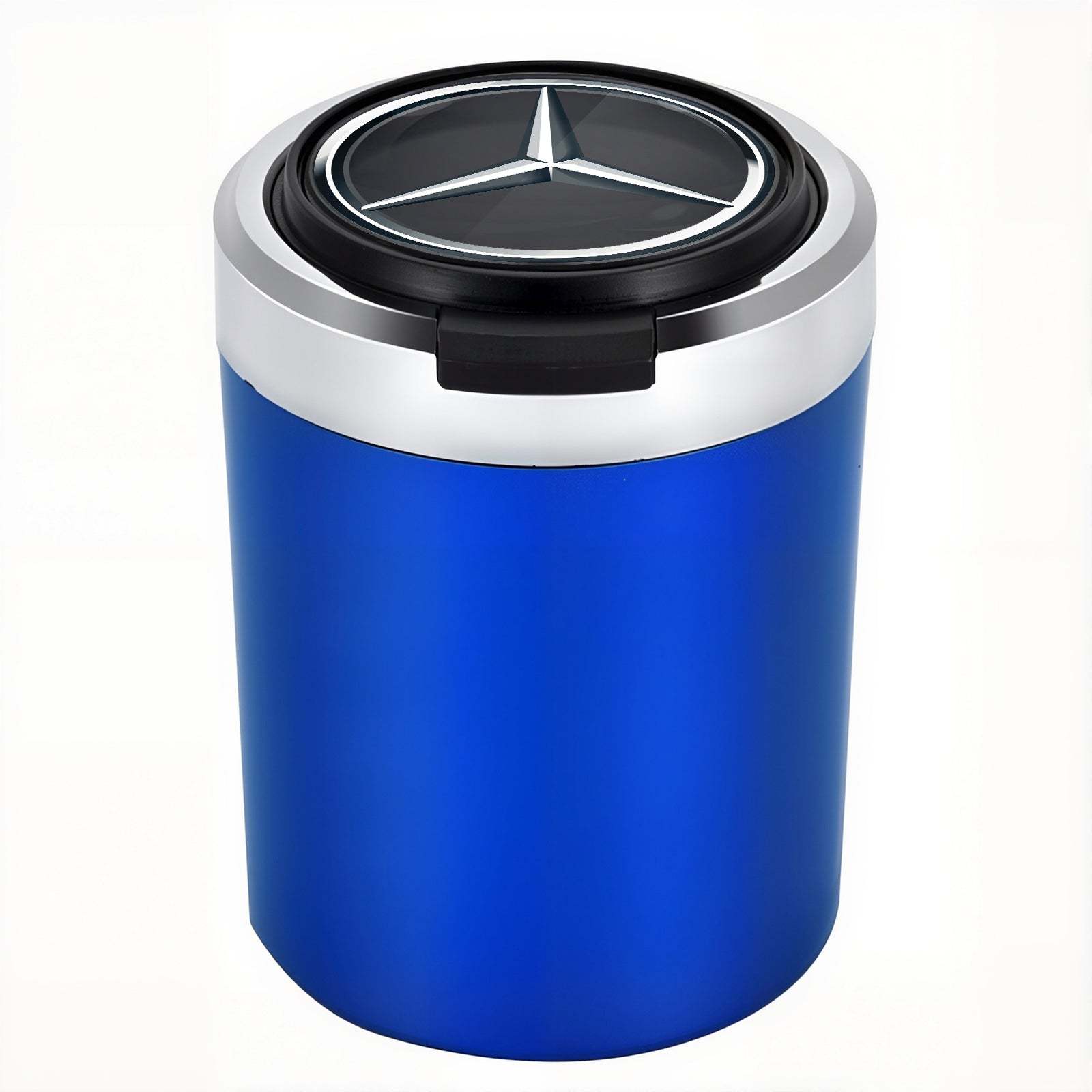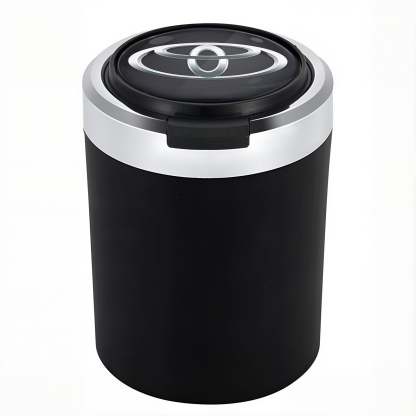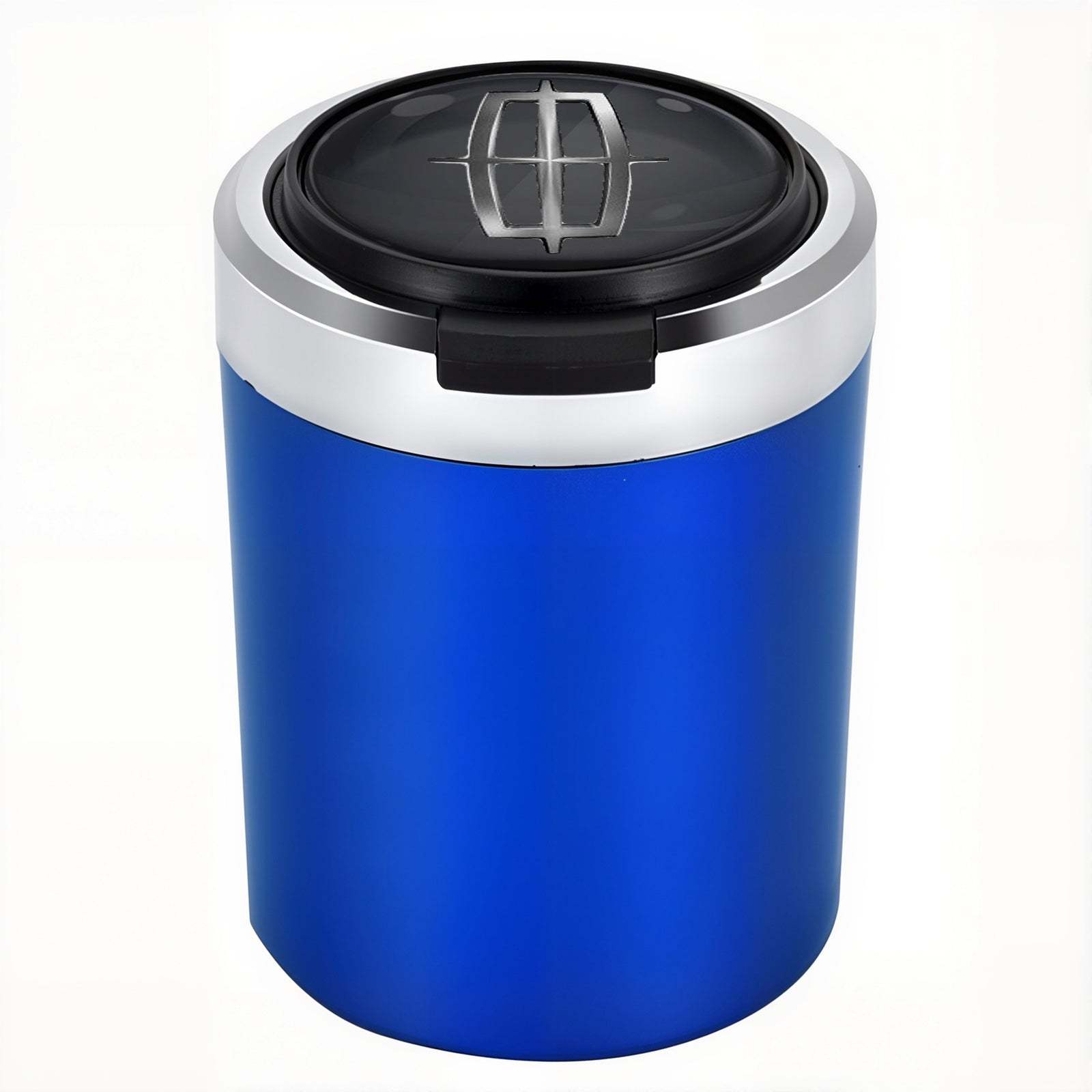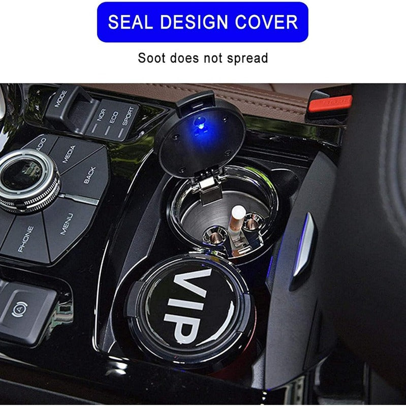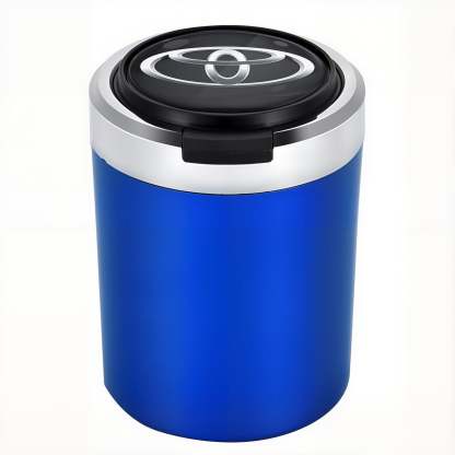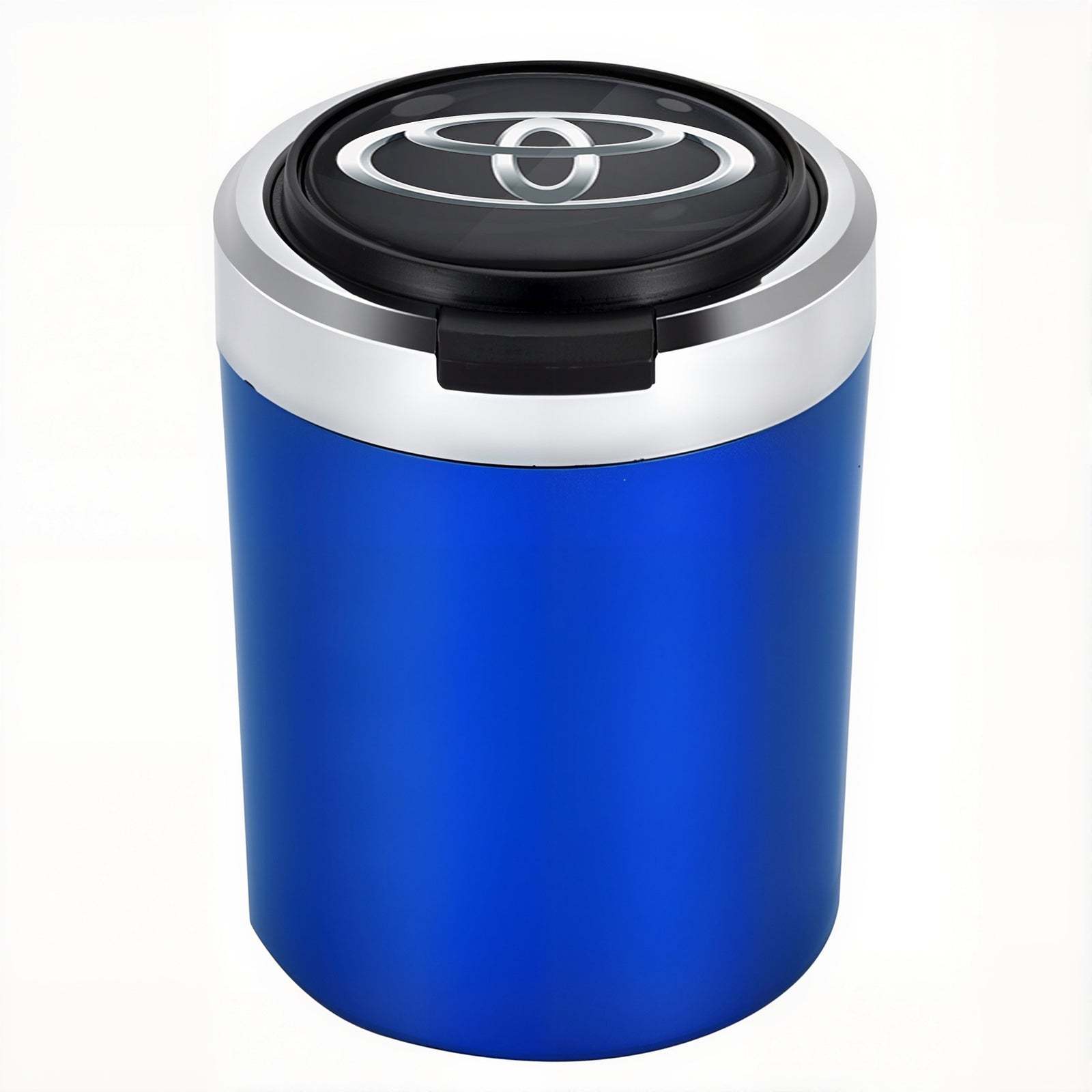 Press once and the lid glides open silently; a soft blue LED guides your aim so you never fumble for ashes during night drives.
