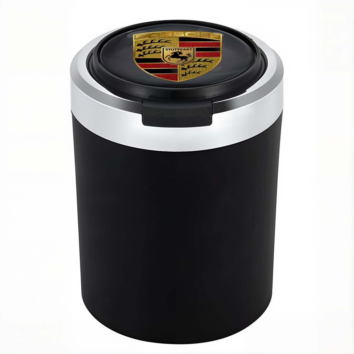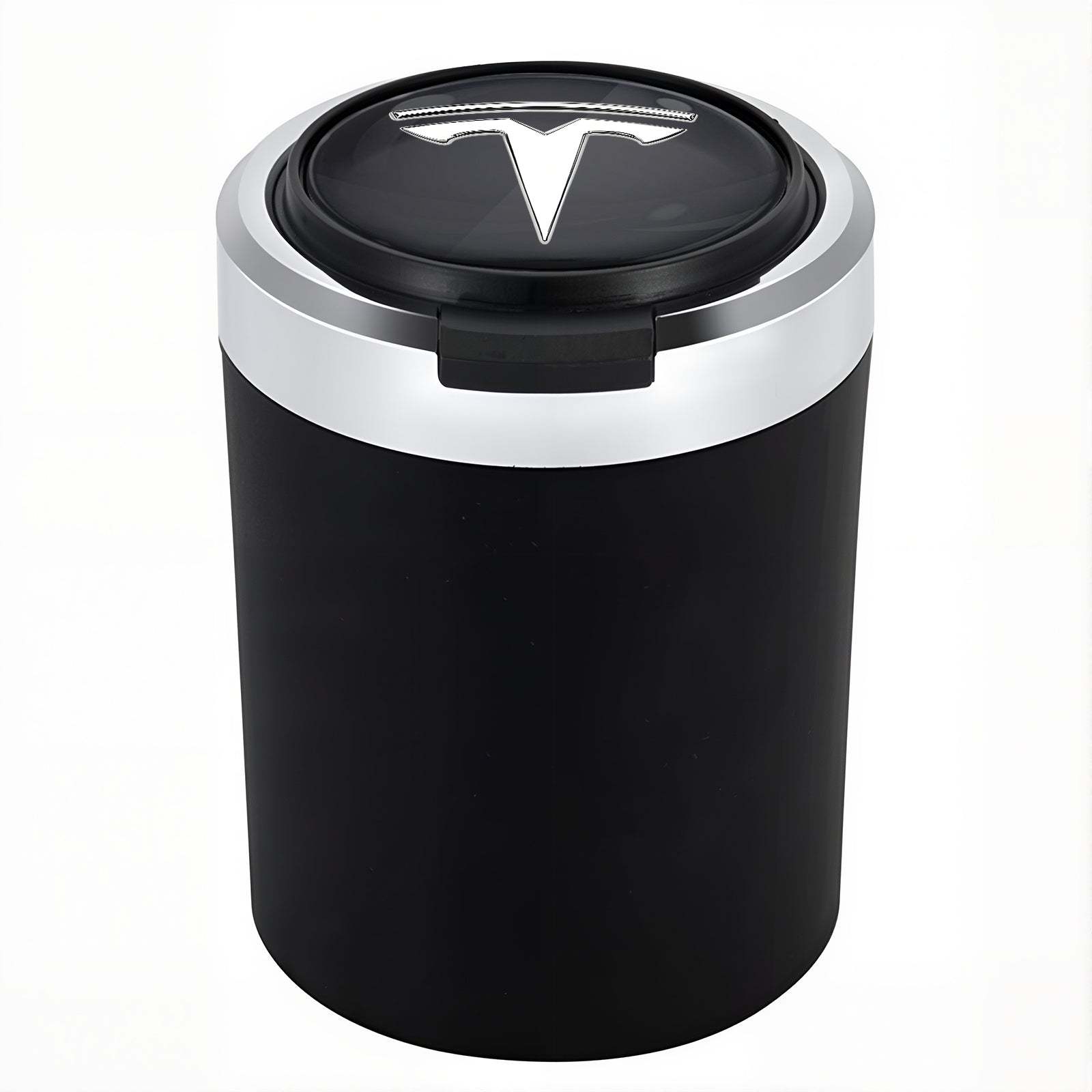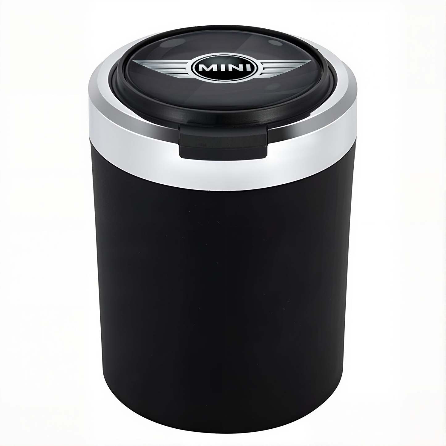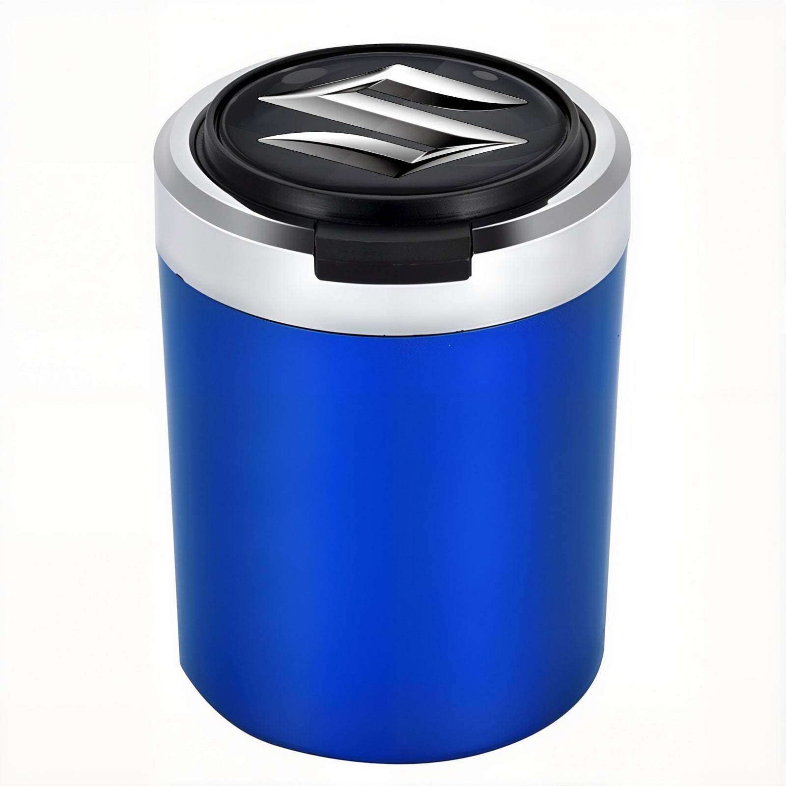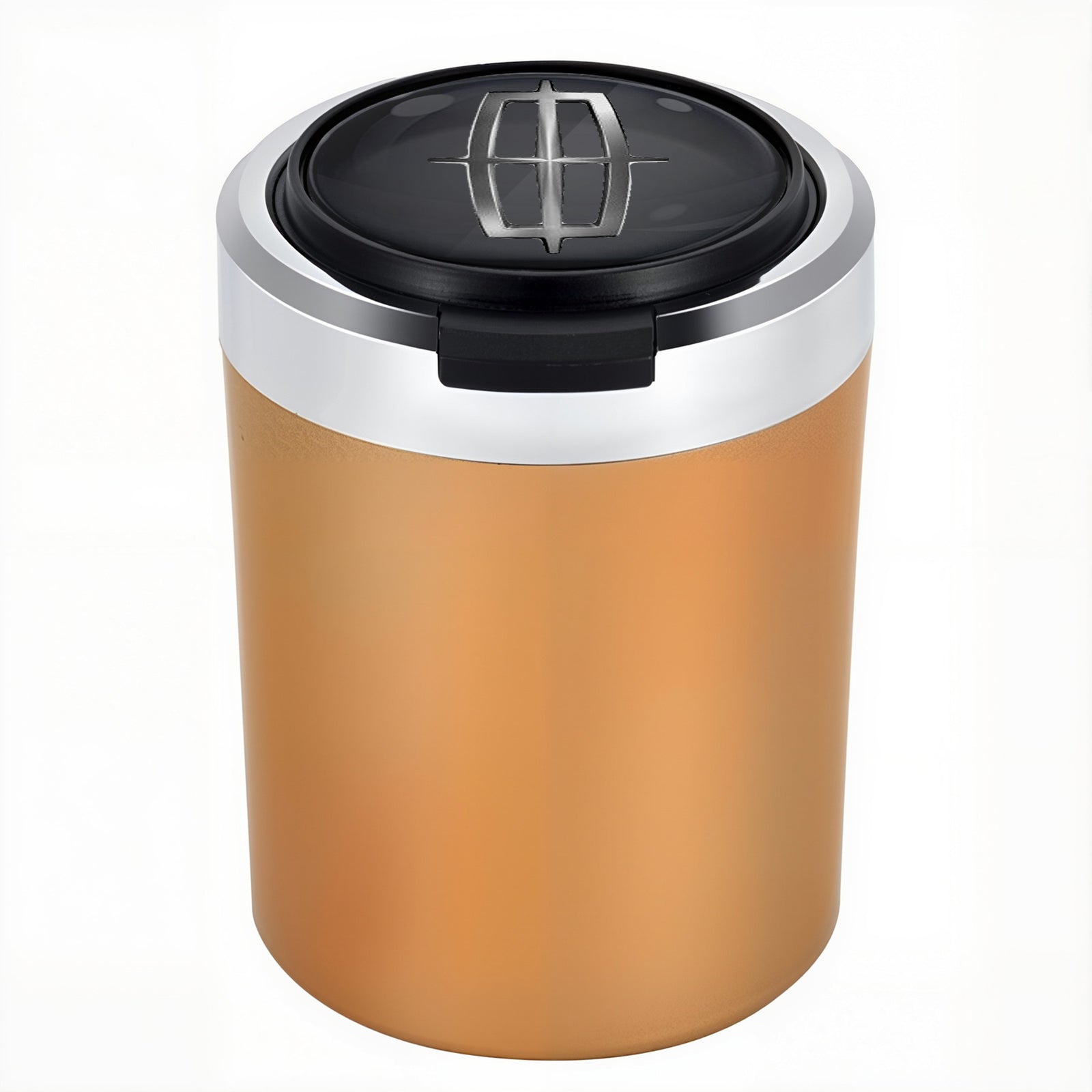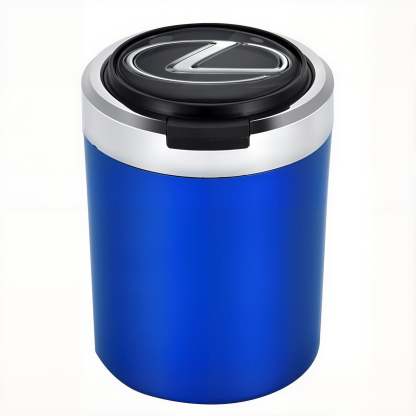 Press once and the lid glides open silently; a soft blue LED guides your aim so you never fumble for ashes during night drives.