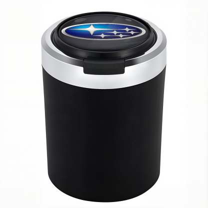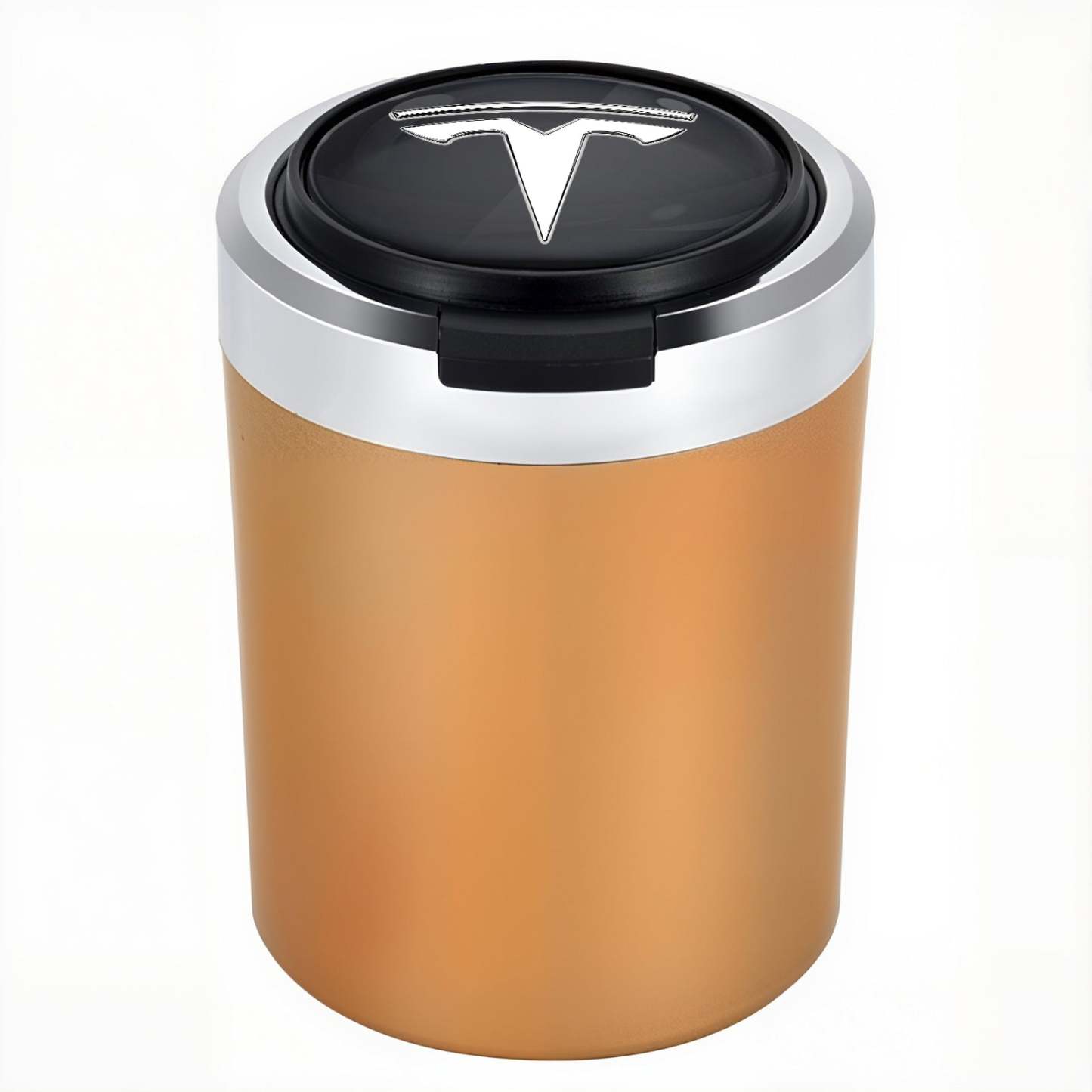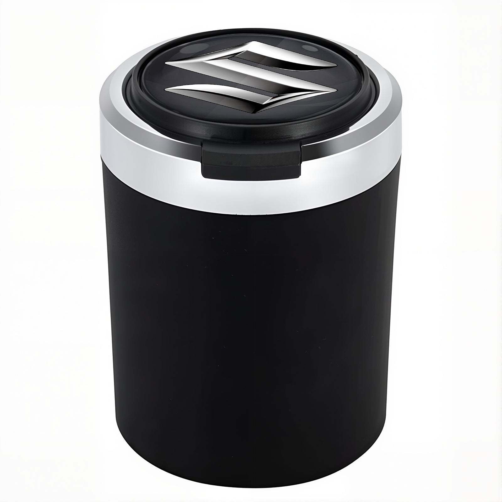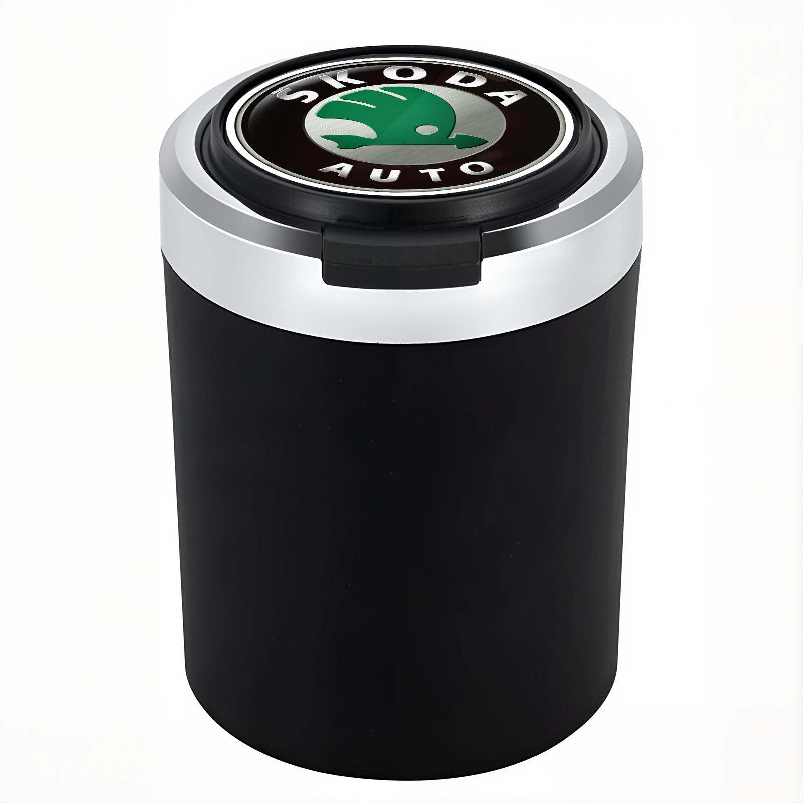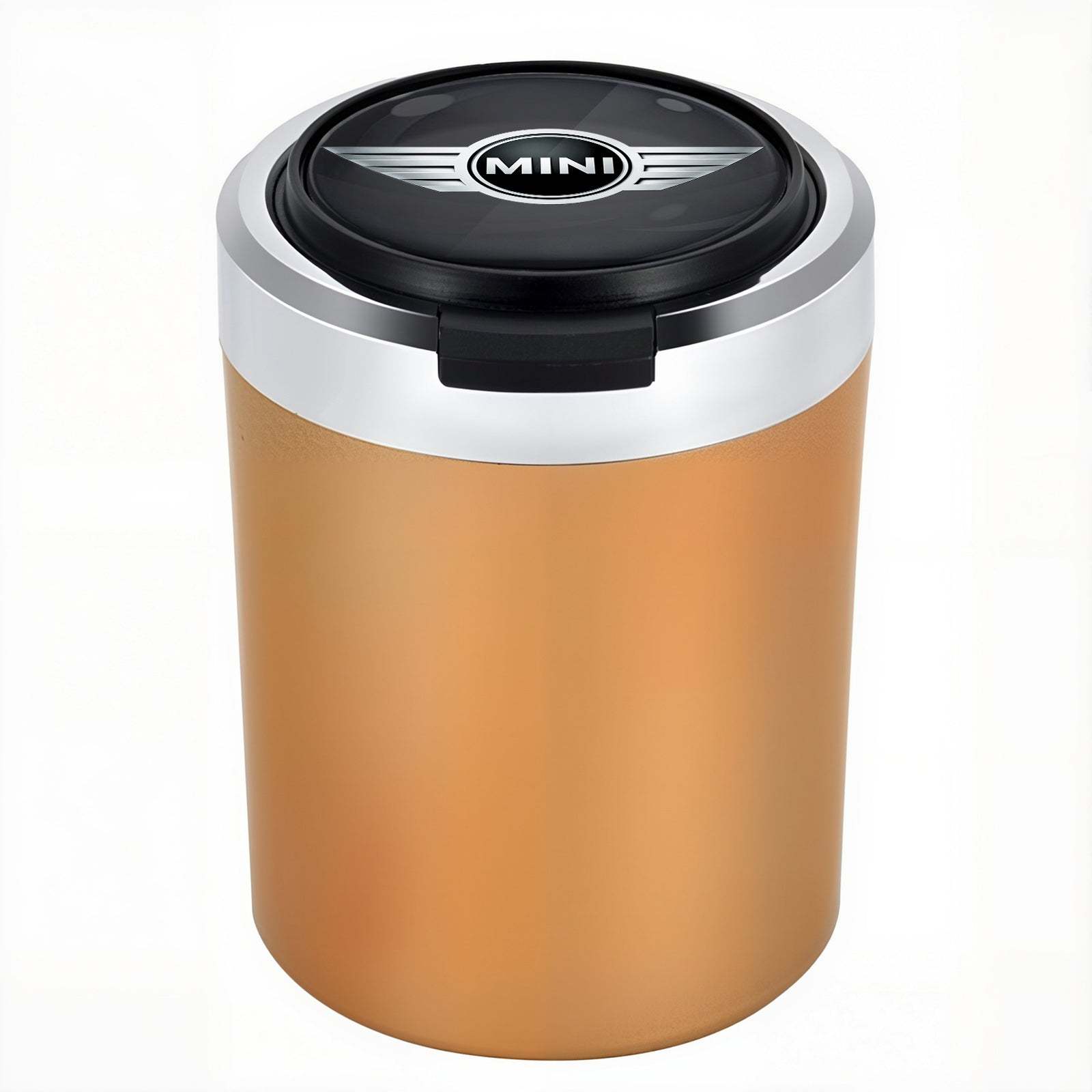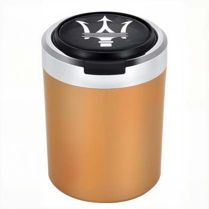 Press once and the lid glides open silently; a soft blue LED guides your aim so you never fumble for ashes during night drives.
