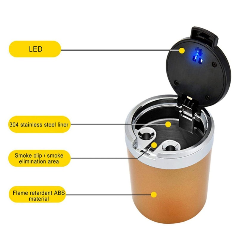 Woyuosn Stainless Steel LED Car Cupholder Ashtray
