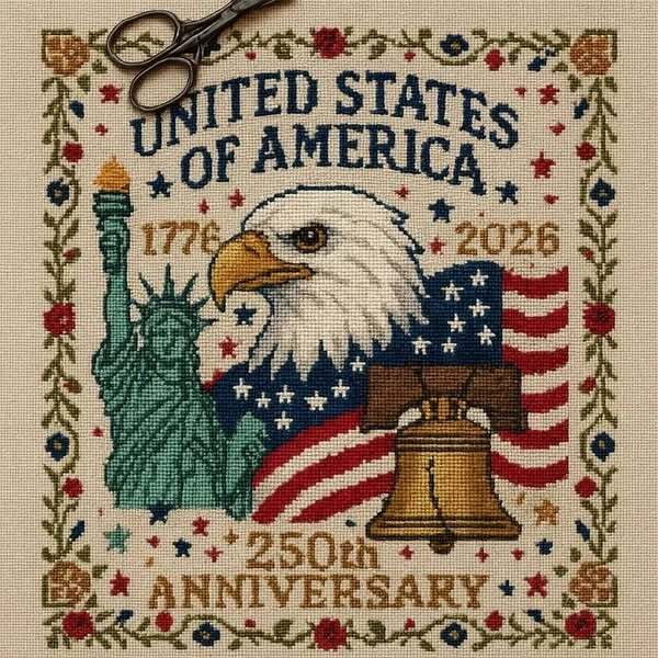 🦅 United States 250th Anniversary Cross Stitch Kit – Patriotic Eagle, Liberty & Flag 🇺🇸