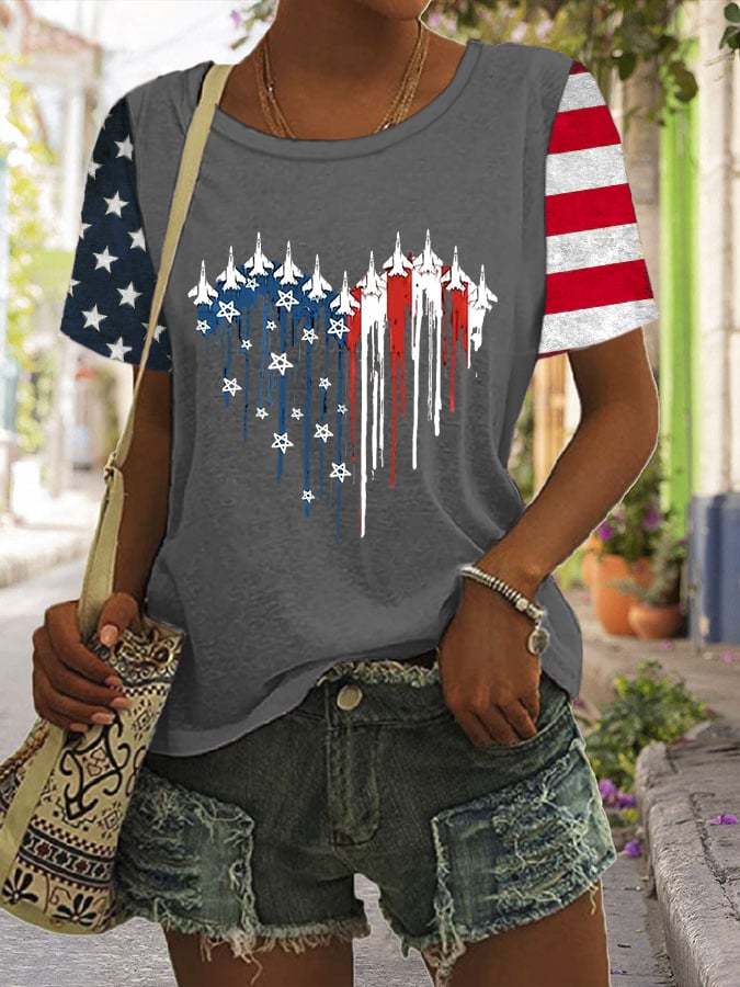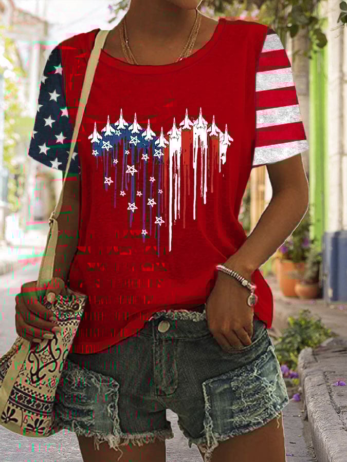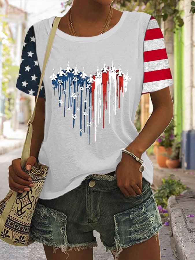 Women's Independence Day Flag Print Casual T-shirt