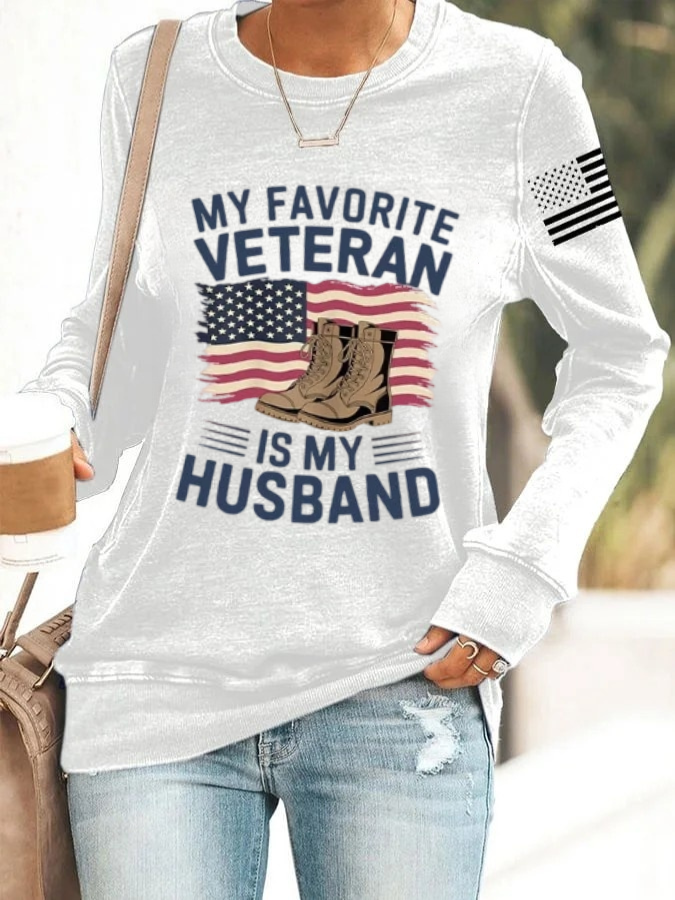 Women's 'My Favorite Veteran Is My Husband' Print Sweatshirt