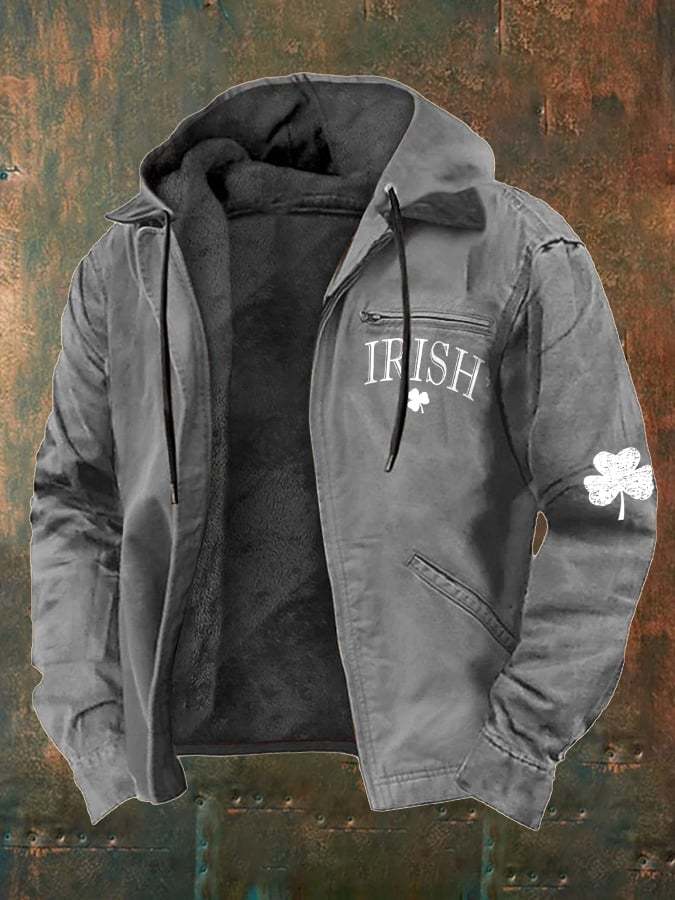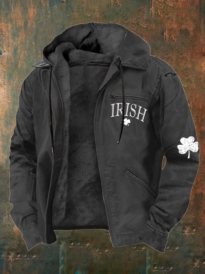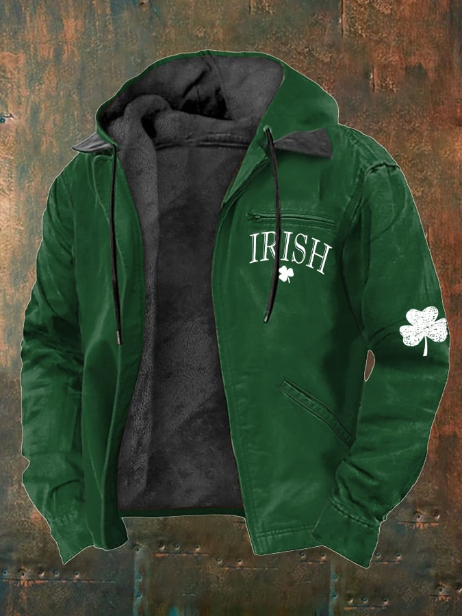 Men's St. Patrick's Day Irish Print Plush Zipper Jacket